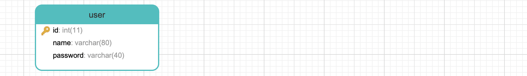 1 2 3 4 5 6 7 DROP TABLE IF EXISTS `user `;CREATE TABLE `user ` ( `id` int (11 ) NOT NULL AUTO\_INCREMENT COMMENT '主键' , `name` varchar (80 ) DEFAULT NULL COMMENT '用户名' , `password` varchar (40 ) DEFAULT NULL COMMENT '用户密码' ,PRIMARY KEY (`id`) ) ENGINE= InnoDB AUTO\_INCREMENT= 2 DEFAULT CHARSET= utf8;
