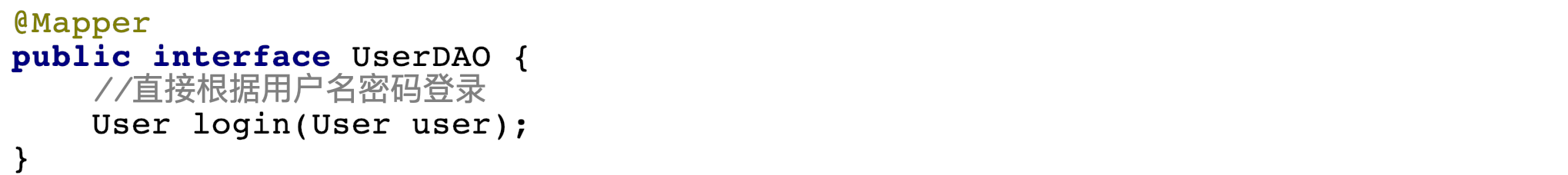 1 2 3 4 @Mapper public interface UserDAO { User login (User user) ; }