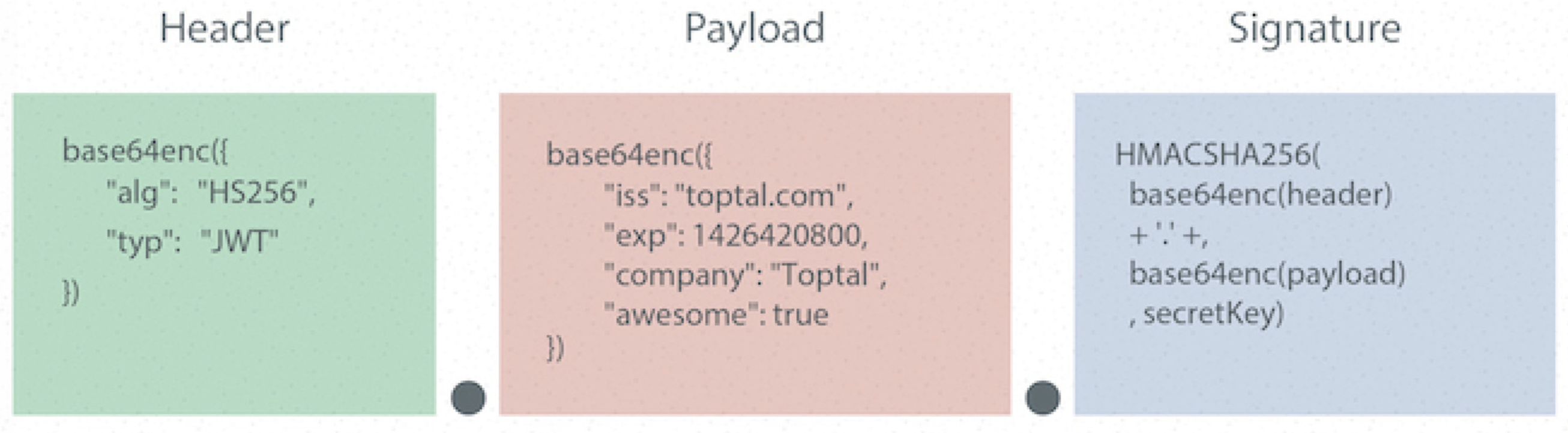 1 2 3 4 5 6 # 5.放在一起 - 输出是三个由点分隔的Base64-URL字符串,可以在HTML和HTTP环境中轻松传递这些字符串,与基于XML的标准(例如SAML)相比,它更紧凑。- 简洁(Compact) 可以通过URL, POST 参数或者在 HTTP header 发送,因为数据量小,传输速度快- 自包含(Self-contained) 负载中包含了所有用户所需要的信息,避免了多次查询数据库