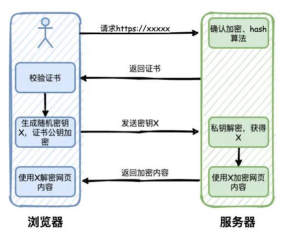 - 浏览器则使用X和之前约定的加密算法进行解密,得到最终的网页内容