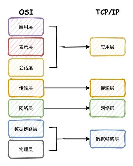 TCP/IP则是四层的结构,相当于是对OSI模型的简化。