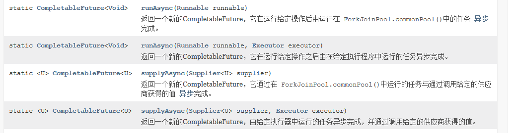 /\*\* \* A handler for rejected tasks that runs the rejected task \* directly in the calling thread of the {@code execute} method, \* unless the executor has been shut down, in which case the task \* is discarded. \*/ //用于拒绝任务的处理程序,可以直接在{@code execute}方法的调用线程中运 //行被拒绝的任务\*除非执行器已被关闭,否则这种情况下该任务将被丢弃。 //简单点就是谁调用谁执行 publicstaticclassCallerRunsPolicyimplementsRejectedExecutionHandler { /\*\* \* Creates a {@code CallerRunsPolicy}. \*/ publicCallerRunsPolicy() { } /\*\* \* Executes task r in the caller's thread, unless the executor \* has been shut down, in which case the task is discarded. \* \* @param r the runnable task requested to be executed \* @param e the executor attempting to execute this task \*/ public void rejectedExecution(Runnable r, ThreadPoolExecutor e) { if (!e.isShutdown()) { r.run(); } } } /\*\* \* A handler for rejected tasks that throws a \* {@code RejectedExecutionException}. \*/ //直接抛异常 public static class AbortPolicy implements RejectedExecutionHandler { /\*\* \* Creates an {@code AbortPolicy}. \*/ public AbortPolicy() { } /\*\* \* Always throws RejectedExecutionException. \* \* @param r the runnable task requested to be executed \* @param e the executor attempting to execute this task \* @throws RejectedExecutionException always \*/ public void rejectedExecution(Runnable r, ThreadPoolExecutor e) { throw new RejectedExecutionException("Task " + r.toString() + " rejected from " + e.toString()); } } /\*\* \* A handler for rejected tasks that silently discards the \* rejected task. \*/ //直接放弃 public static class DiscardPolicy implements RejectedExecutionHandler { /\*\* \* Creates a {@code DiscardPolicy}. \*/ public DiscardPolicy() { } /\*\* \* Does nothing, which has the effect of discarding task r. \* \* @param r the runnable task requested to be executed \* @param e the executor attempting to execute this task \*/ public void rejectedExecution(Runnable r, ThreadPoolExecutor e) { } } /\*\* \* A handler for rejected tasks that discards the oldest unhandled \* request and then retries {@code execute}, unless the executor \* is shut down, in which case the task is discarded. \*/ //放弃最旧未处理的程序 public static class DiscardOldestPolicy implements RejectedExecutionHandler { /\*\* \* Creates a {@code DiscardOldestPolicy} for the given executor. \*/ public DiscardOldestPolicy() { } /\*\* \* Obtains and ignores the next task that the executor \* would otherwise execute, if one is immediately available, \* and then retries execution of task r, unless the executor \* is shut down, in which case task r is instead discarded. \* \* @param r the runnable task requested to be executed \* @param e the executor attempting to execute this task \*/ public void rejectedExecution(Runnable r, ThreadPoolExecutor e) { if (!e.isShutdown()) { e.getQueue().poll(); e.execute(r); } } }