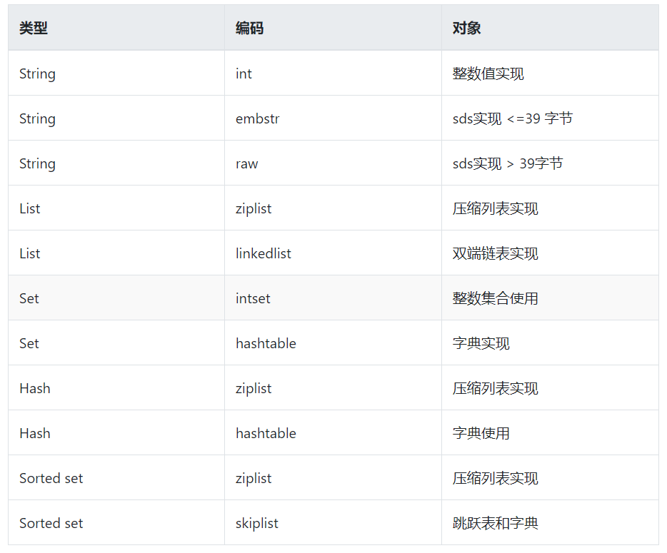 据上表可知,String的编码可以是int,embstr,raw,当输入的数值可以转换为long,那就以int的类型进行存储。对于字符类型,redis底层并不是直接使用string,而是自己实现了一个简单的动态字符串sds,c语言的string是不记录自身长度是,但sds是记录的,这样就使得获取本身字符长度的操作时间复杂度从O(n)降到O(1),对于emstr编码的范围是字符串字节小于等于39个字节,raw是大于39个字节,当然int编码也是可以在一定情况下转换为raw的,比如对int进行append操作。